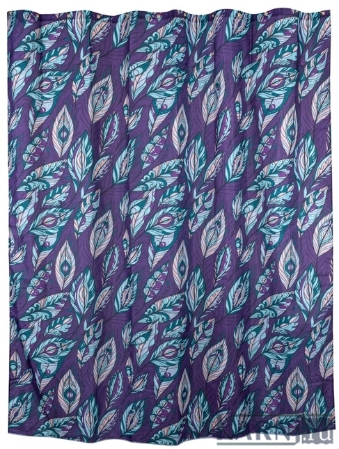 Занавеска из 100% полиэстера для ванны с 12 металлическими люверсами под кольца. Материал шторы обработан гидрофобной пропиткой, отталкивающей воду. Внизу по всей длине вшит шнур-утяжелитель.